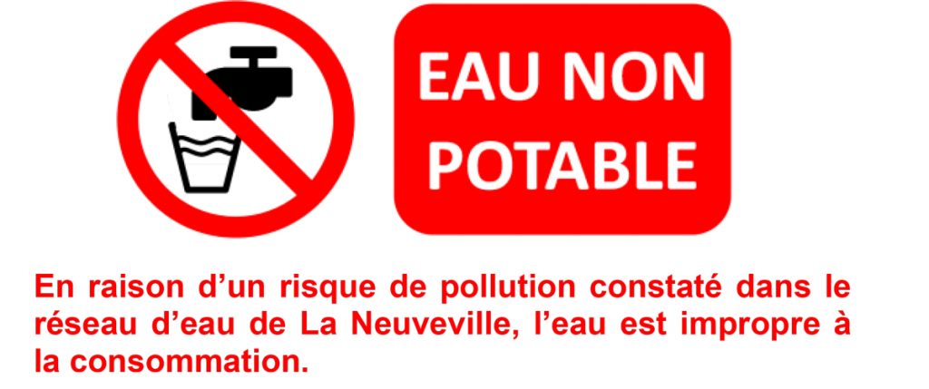 En raison d’un risque de pollution constaté dans le réseau d’eau de La Neuveville, l’eau est impropre à la consommation.